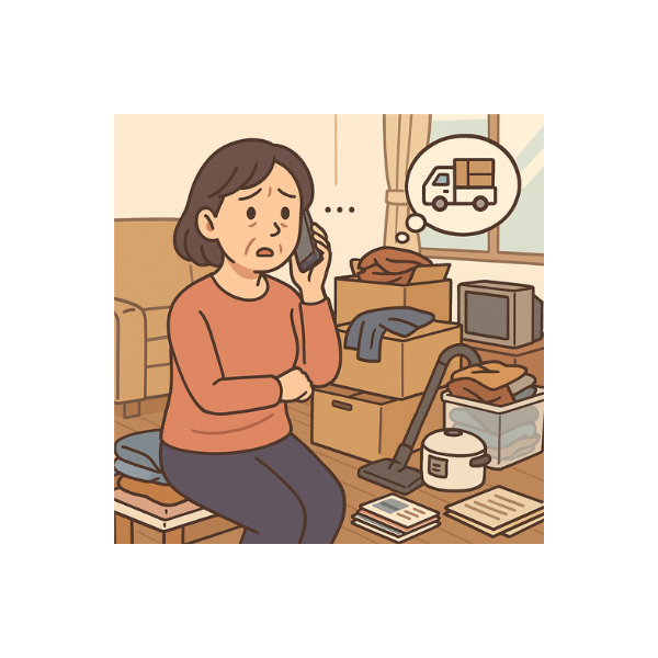 「片付けが進まず困っている」とのお問い合わせをいただき、部屋の整理と不用品の処分・清掃作業を承りました。ご希望の日時に合わせて、担当スタッフより事前にお電話のうえ訪問・お見積もりいたしました。